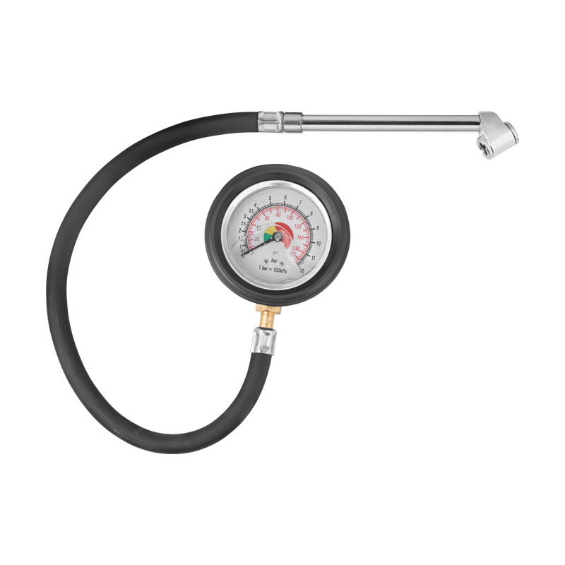 این محصول به شلنگ 50 سانتی‌متری مقاوم و انعطاف‌پذیر مجهز شده که با اتصال چرخشی در انتها، سهولت استفاده در زوایای مختلف را برای کاربر به همراه دارد. بدنه والو و رابط بلند آن از آلیاژ آلومینیوم ریخته‌گری‌شده با روکش کروم ساخته شده است که مقاومت بالایی در برابر سایش و خوردگی ایجاد می‌کند. درجه باد روغنی 2703 قابلیت تحمل فشار تا 170 PSI را دارد و گیج آن با پوشش محافظ لاستیکی ضد ضربه محافظت می‌شود. این محصول مطابق با استاندارد CE اروپا تولید شده و انتخابی مطمئن برای کارگاه‌ها، تعمیرگاه‌ها و استفاده‌های حرفه‌ای محسوب می‌گردد.