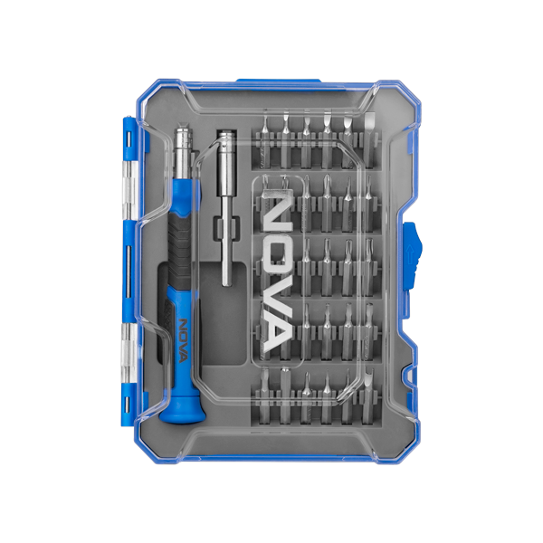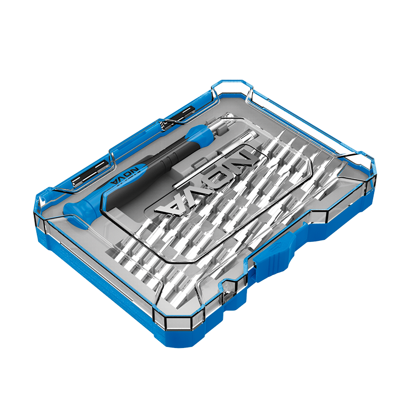 ست پیچگوشتی موبایلی نووا مدل 1328 یک مجموعه کاربردی و کامل برای کاربرانی است که نیاز به ابزار دقیق در تعمیرات موبایل، لوازم الکترونیکی و کارهای صنعتی سبک دارند. این ست شامل 32 عدد سری پرکاربرد در انواع چهارسو، دوسو، سهپر، ستارهای و آلن است که بهطور دقیق بر روی گل پیچها قرار گرفته و از گشتاور بالایی برخوردارند. بیتها از جنس فولاد کروم وانادیوم با سطح آبکاری و پولیششده ساخته شدهاند که دوام بالا و مقاومت در برابر زنگزدگی را تضمین میکند.
