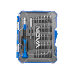 ست پیچگوشتی موبایلی نووا مدل 1328 یک مجموعه کاربردی و کامل برای کاربرانی است که نیاز به ابزار دقیق در تعمیرات موبایل، لوازم الکترونیکی و کارهای صنعتی سبک دارند. این ست شامل 32 عدد سری پرکاربرد در انواع چهارسو، دوسو، سهپر، ستارهای و آلن است که بهطور دقیق بر روی گل پیچها قرار گرفته و از گشتاور بالایی برخوردارند. بیتها از جنس فولاد کروم وانادیوم با سطح آبکاری و پولیششده ساخته شدهاند که دوام بالا و مقاومت در برابر زنگزدگی را تضمین میکند.