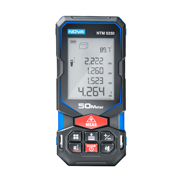 متر لیزری 50 متری نووا مدل 5250 ابزاری دقیق و چندکاره است که برای اندازه‌گیری فواصل، محاسبه مساحت، حجم و انجام محاسبات فیثاغورثی طراحی شده است. این دستگاه با لیزر ایمن CLASS II و دیود 635 نانومتر، دقت 1.5 میلی‌متر در 10 متر را ارائه می‌دهد و با قابلیت اندازه‌گیری تکی و پیوسته، سنسور شیب‌سنج و تراز خودکار، گزینه‌ای مناسب برای پروژه‌های ساختمانی، دکوراسیون و فعالیت‌های عمرانی محسوب می‌شود. صفحه‌نمایش بزرگ چهار ردیفه امکان مشاهده همزمان داده‌ها و محاسبات را فراهم می‌کند و استفاده از آن را ساده و سریع می‌سازد.