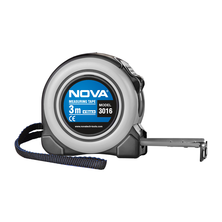 متر 3 متری نووا مدل 3016 یکی از ابزارهای اندازه‌گیری دقیق و کاربردی است که برای مصارف خانگی و حرفه‌ای طراحی شده است. این متر از تیغه سفید رنگ سه‌پرچ با روکش مات و مقیاس متریک بهره می‌برد که علاوه بر خوانایی بالا، مقاومت مناسبی در برابر سایش و ضربه دارد. بدنه آن از پلاستیک مقاوم ABS با روکش لاستیکی ضد ضربه ساخته شده که طول عمر ابزار را افزایش داده و خوش‌دستی و ضد لغزش بودن را تضمین می‌کند.