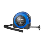 متر 7.5 متری سری Compress نووا مدل 3064 با طراحی ارگونومیک، جمعوجور و مقاوم، انتخابی مناسب برای استفاده در محیطهای خانگی و صنعتی است. بدنه این متر از ABS مقاوم با روکش لاستیکی TPR ساخته شده که در برابر ضربه مقاومت بالایی دارد و گرفتن آن را راحتتر میکند. تیغه فولادی سفید رنگ با روکش مات، چاپ دوطرفه و اعداد درشت طبق استاندارد JIS ژاپن، دوام بالا و خوانایی عالی را تضمین میکند. این متر مجهز به سیستم متریک با دقت Class II است که دقت اندازهگیری را افزایش میدهد.