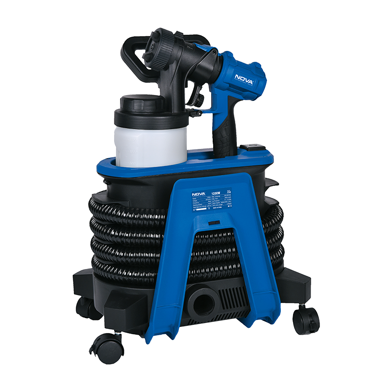 پیستوله رنگ پاش برقی نووا مدل 2748 با موتور قدرتمند 1200 وات و طراحی نوآورانه ایستاده (مبله)، یک ابزار حرفه‌ای برای پروژه‌های بزرگ رنگ‌آمیزی است. این دستگاه از مکانیزم پاشش HVLP (حجم بالا، فشار کم) بهره می‌برد که نتیجه آن، پوششی کاملاً یکنواخت و صاف و بدون هرگونه رد قلم‌مو است. طراحی چرخ‌دار به همراه دسته تلسکوپی استیل، جابجایی دستگاه را در محیط کار بسیار آسان می‌کند. کاربر می‌تواند با استفاده از پیچ تنظیم جریان، خروجی رنگ را تا 1000 میلی‌لیتر در دقیقه کنترل کند و الگوی پاشش را در سه حالت افقی، عمودی یا دایره‌ای تنظیم نماید.