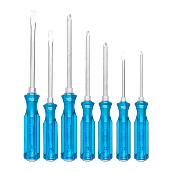 - شامل 7 عدد پیچگوشتی (4 عدد چهارسو و 3 عدد دوسو)