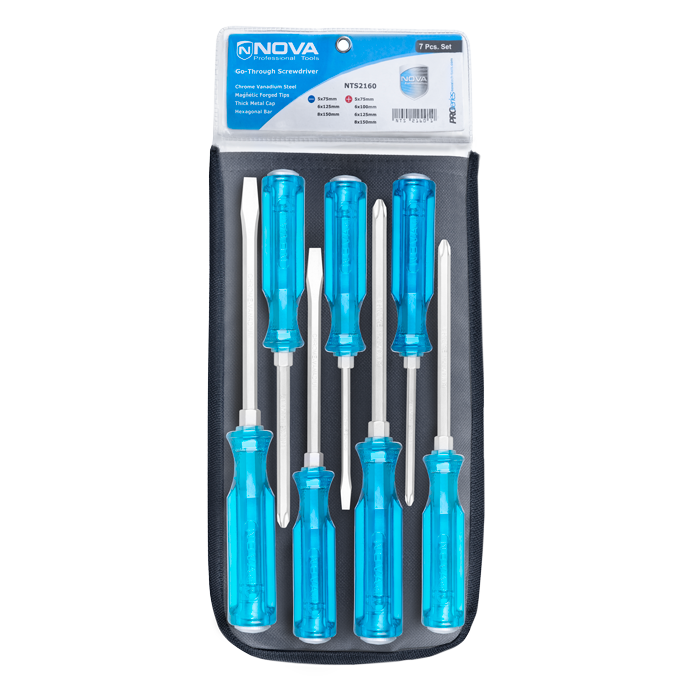 پیچگوشتی ضربهخور 7 عددی نووا مدل 2160 یکی از مجموعههای کاربردی و مقاوم این برند است که برای مصارف صنعتی و خانگی طراحی شده است. این مجموعه شامل 4 عدد پیچگوشتی چهارسو و 3 عدد پیچگوشتی دوسو بوده که همگی از فولاد کروم وانادیوم ساخته شدهاند. طراحی ششگوش میلهها امکان استفاده آسان با آچار را فراهم کرده و قابلیت چکشخواری آنها موجب افزایش کارایی در شرایط سخت کاری میشود.