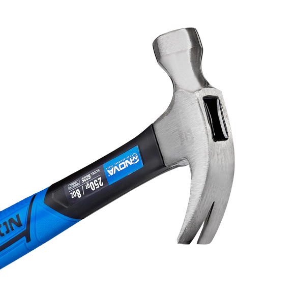 چکش دوشاخ ۲۵۰ گرمی نووا مدل ۶۲۲۵، یک ابزار سبکوزن و دقیق است که برای کاربران صنعتی و خانگی طراحی شده و کیفیت ساخت آن با استاندارد GS اروپا تضمین شده است. سر ۲۵۰ گرمی این چکش از فولاد فورجشده و صیقلخورده ساخته شده و دارای سطح مقطع گرد است که به کاربر اجازه میدهد میخهای کوچک را با دقت بالا و بدون آسیب رساندن به سطح چوب بکوبد. بخش دوشاخ آن نیز با طراحی V شکل، برای بیرون کشیدن تمیز میخهای نازک بهینهسازی شده است. اتصال بسیار محکم سر و دسته به وسیله رزین اپوکسی، ایمنی و پایداری این ابزار را در استفادههای مکرر تضمین میکند.