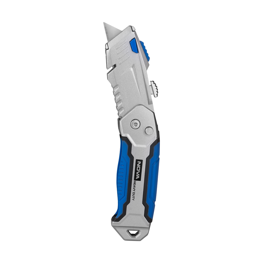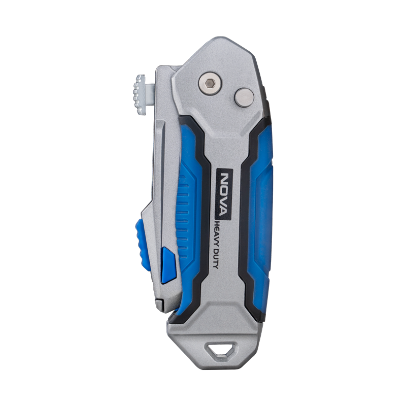 کاتر ذوزنقهای تاشو نووا مدل ۱۳۷۲، ترکیبی هوشمندانه از قابلیت حمل آسان و عملکرد حرفهای است که برای کاربرانی که به ابزاری ایمن و قابل حمل نیاز دارند، طراحی شده است. ویژگی اصلی این کاتر، مکانیزم تاشوی آن است که با فشردن یک دکمه، بدنه به راحتی باز و بسته میشود و امکان حمل ایمن آن را در جیب یا جعبه ابزار فراهم میکند. بدنه این ابزار از آلیاژ روی مستحکم ساخته شده و تیغههای آن از جنس فولاد SK5 است که تضمینکننده برشهایی دقیق و سریع بر روی انواع سطوح سخت میباشد. این طراحی کامپکت، قدرت و دوام یک کاتر صنعتی را در ابعادی کوچک ارائه میدهد.