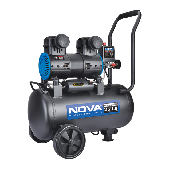 کمپرسور باد سایلنت 25 لیتری نووا مدل 9125، گزینه‌ای ایده‌آل برای تامین هوای فشرده در مصارف صنعتی و خانگی است. این دستگاه با بهره‌مندی از دو سیلندر و موتور القایی قدرتمند با توان 1300 وات، قادر است مخزن 25 لیتری خود را در حداقل زمان پر کرده و عملکردی مداوم و پایدار ارائه دهد. طراحی بدون نیاز به روغن‌کاری، صدای بسیار کم و سیستم ضد لرزش، استفاده از این کمپرسور را در محیط‌های کاری مختلف آسان و بی‌دردسر می‌کند. وجود واحد مراقبت برای جذب رطوبت نیز باعث افزایش طول عمر و بهبود کیفیت عملکرد دستگاه می‌شود.