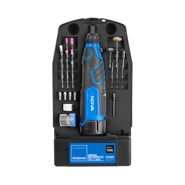 کیت فرز مینیاتوری شارژی ۱۲ ولت نووا مدل ۷۵۴۵، انتخابی حرفه‌ای برای کارهای ظریف و دقیق در صنایع دستی، تاسیساتی و پروژه‌های خانگی است. این کیت با ۷۴ قطعه متنوع از جمله سری‌های حکاکی، سنباده‌زنی و پولیش، امکان انجام طیف گسترده‌ای از فعالیت‌ها را فراهم می‌کند. موتور این فرز با توان ۱۲ ولت، سرعتی تا ۲۵۰۰۰ دور در دقیقه ارائه می‌دهد و در کنار باتری لیتیومی ۲۰۰۰ میلی‌آمپری، کارایی بالا و شارژدهی طولانی را تضمین می‌کند.