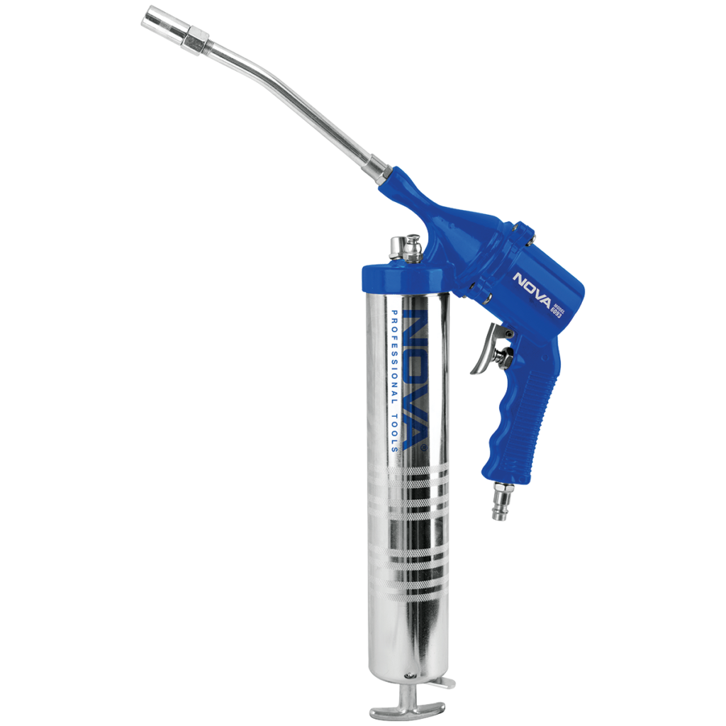گریس پمپ بادی نووا مدل ۶۰۹۳، یک ابزار پنوماتیک حرفهای است که برای گریسکاری سریع و پرحجم در محیطهای صنعتی و تعمیرگاهی طراحی شده است. ویژگی اصلی این دستگاه، عملکرد تمام اتوماتیک آن است؛ با اتصال به کمپرسور هوا و فشردن ماشه، جریانی پیوسته و قدرتمند از گریس را تا حداکثر فشار ۳۰ مگاپاسکال فراهم میکند. این قابلیت، سرعت انجام کار را در مقایسه با گریس پمپهای دستی به شدت افزایش میدهد و برای روانکاری ماشینآلات سنگین ایدهآل است. طراحی انحصاری پیستون هوای آن، عملکردی پایدار و یکنواخت را در هر بار استفاده تضمین میکند.
